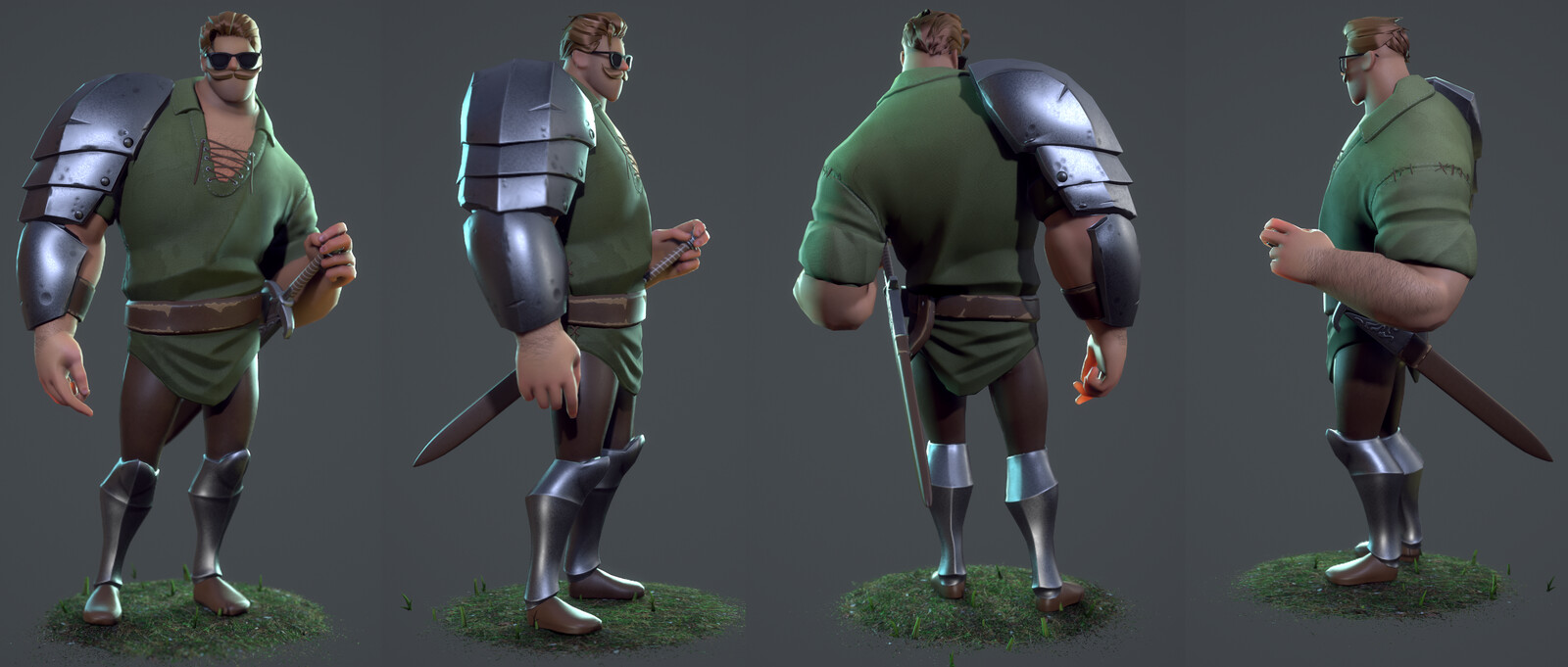 this is a stylized male heroic knight character who skipped leg day. Going for a Fortnite style. Full PBR textures, Animation ready. Available here: https://www.artstation.com/bonebrew22/store/NR1o/hipster-knight